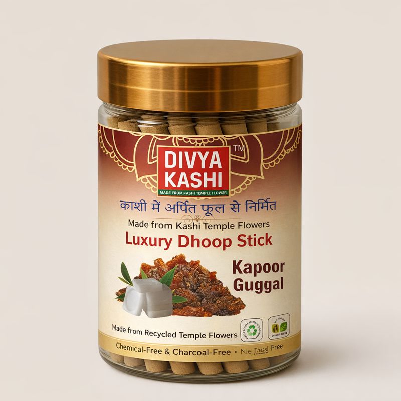Kapoor Guggal dhoop is known for its air-purifying, stress-relieving, and spiritually uplifting properties. Experience the divine aroma of Divya Kashi Kapoor Guggul Luxury Dhoop Sticks, crafted from traditional temple ingredients to purify the air and uplift spiritual energy. Ideal for daily pooja, meditation, and positive ambiance.